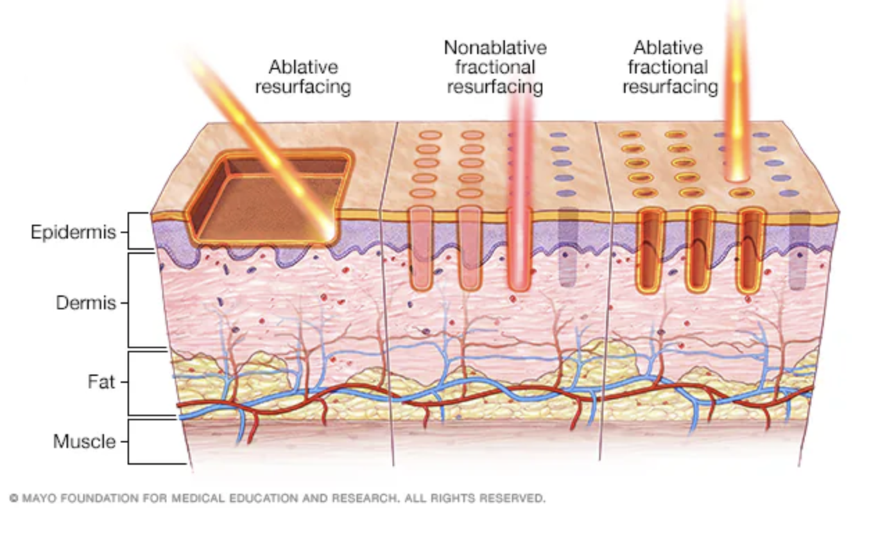 Depending on what they are treating, a dermatologist or cosmetic surgeon might use a fractional laser, which targets smaller sections of the skin. Fractional lasers, however, don’t affect every cell like traditional CO2 lasers, so they are mostly used for fine lines or blotchy skin rather than larger areas of skin.